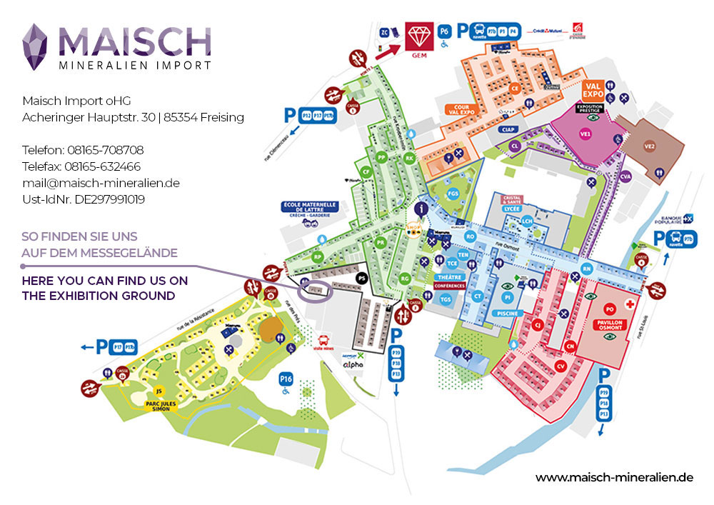 Unsere eigenen Schätze präsentieren wir zum Beispiel auf den Münchner Mineralientagen, Europas wichtigstem Treffpunkt für Mineralien, Fossilien, Edelsteine und Schmuck. Alljährlich sind wir auch Aussteller bei der Mineral & Gem im französischen Sainte Marie aux Mines. Außerdem laden wir Sie zweimal jährlich zu unseren Hausmessen, in unseren Ausstellungsräumen, nach Achering unweit des Münchner Flughafens ein.