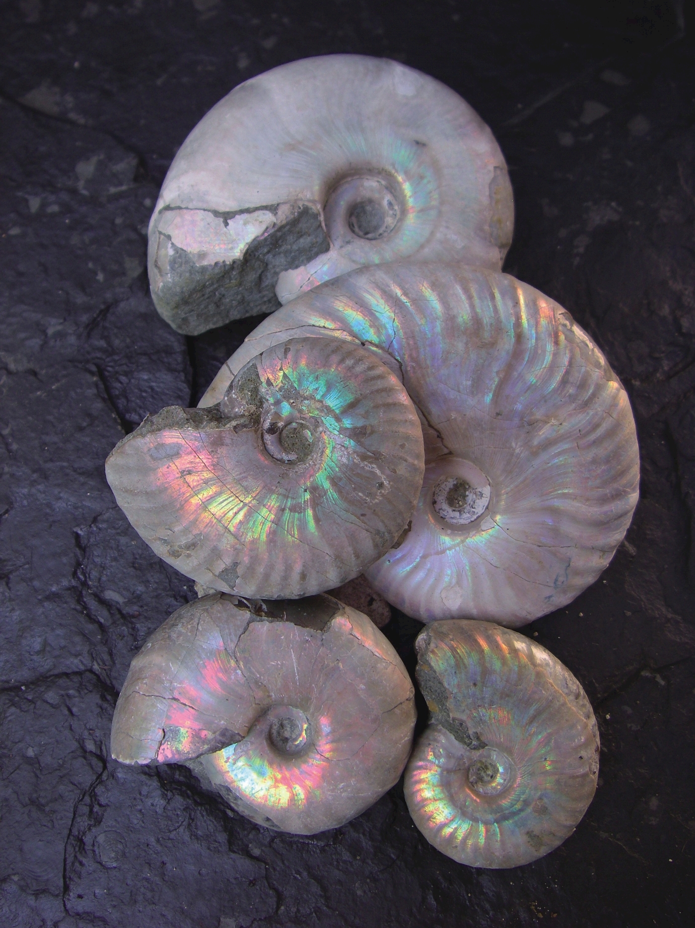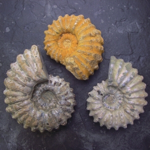 Ammoniten sind Sammelstücke mit langer Geschichte. Unsere kommen aus Madagascar und sind bis zu 17 Zentimeter groß. Objekte mit original erhaltener Schale gehören ebenso dazu wie irisierende, kunstvoll polierte oder gesägte Ammoniten.