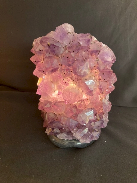 Selenit, Achat, Amethyst und Rosenquarz sind Gesteinsarten, die sich in unterschiedlichen Designs und Stilen verarbeiten lassen. Als Lampen statten wir sie wahlweise mit weißem oder schwarzem Marmorfuß und langlebiger EU-Beleuchtung aus.