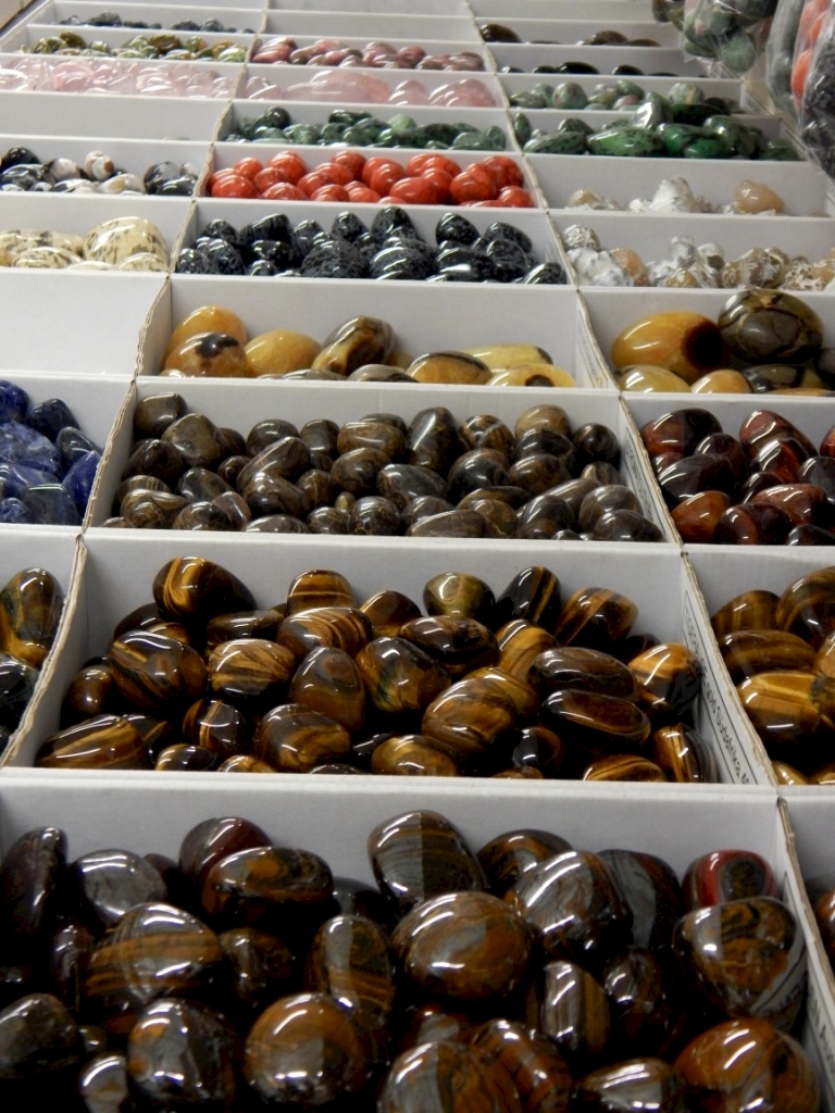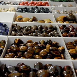 Mit Wasser, Schleifpuver und Poliermittel werden aus den verschiedensten Rohsteinen in der Stahltrommel kleine oder größere Handschmeichler. Oft dauert die Prozedur mehrere Tage, damit das Ergebnis rundum perfekt ist.